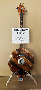 Barry Teague has been woodturning for 25 yrs ,and has the bowl he turned in school many moons ago. Barry was the very first person to attend a course offered by Andrew Hall RPT back in 2016 on how he created a Blues bowl guitar .Very genoresly Barry has placed a Blues bowl guitar in our raffle. The neck of the guitar is made fromScotch pine, fret board Indian rose wood, bowl spalted beech the top of the bowl portion is made from various exotic hardwoods.